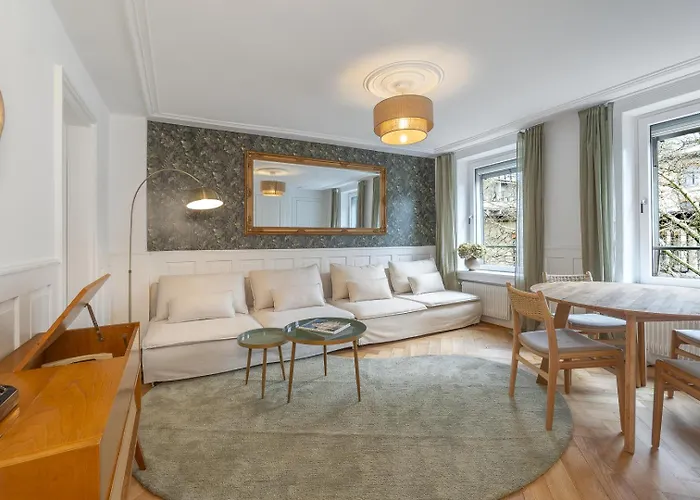 Boho Suite Zuerich - 80 Qm, 3 Schlafzimmer, Balkon & Zugang Zur Dachterrasse Mit Grill & Seesicht is nestled in the Oberstrass district, a few moments from the gastropub The Alehouse. Wi-Fi and private parking are provided for guests' business or leisure needs.